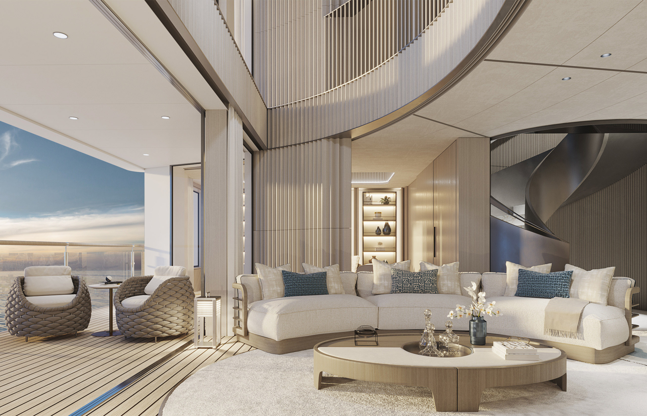 In developing the interior concept for the luxury superyacht Njord, we worked closely with Espen Øino to create a design for five decks of the vessel, as well as for various luxury residences. Drawing on the different natural elements, our design ensures the flow and balance of the interiors come together as a whole, as this is a living space and home that must have a sense of place.