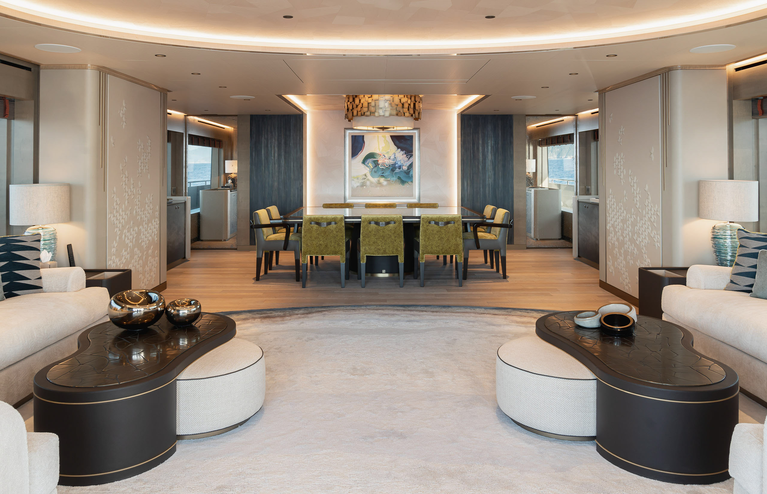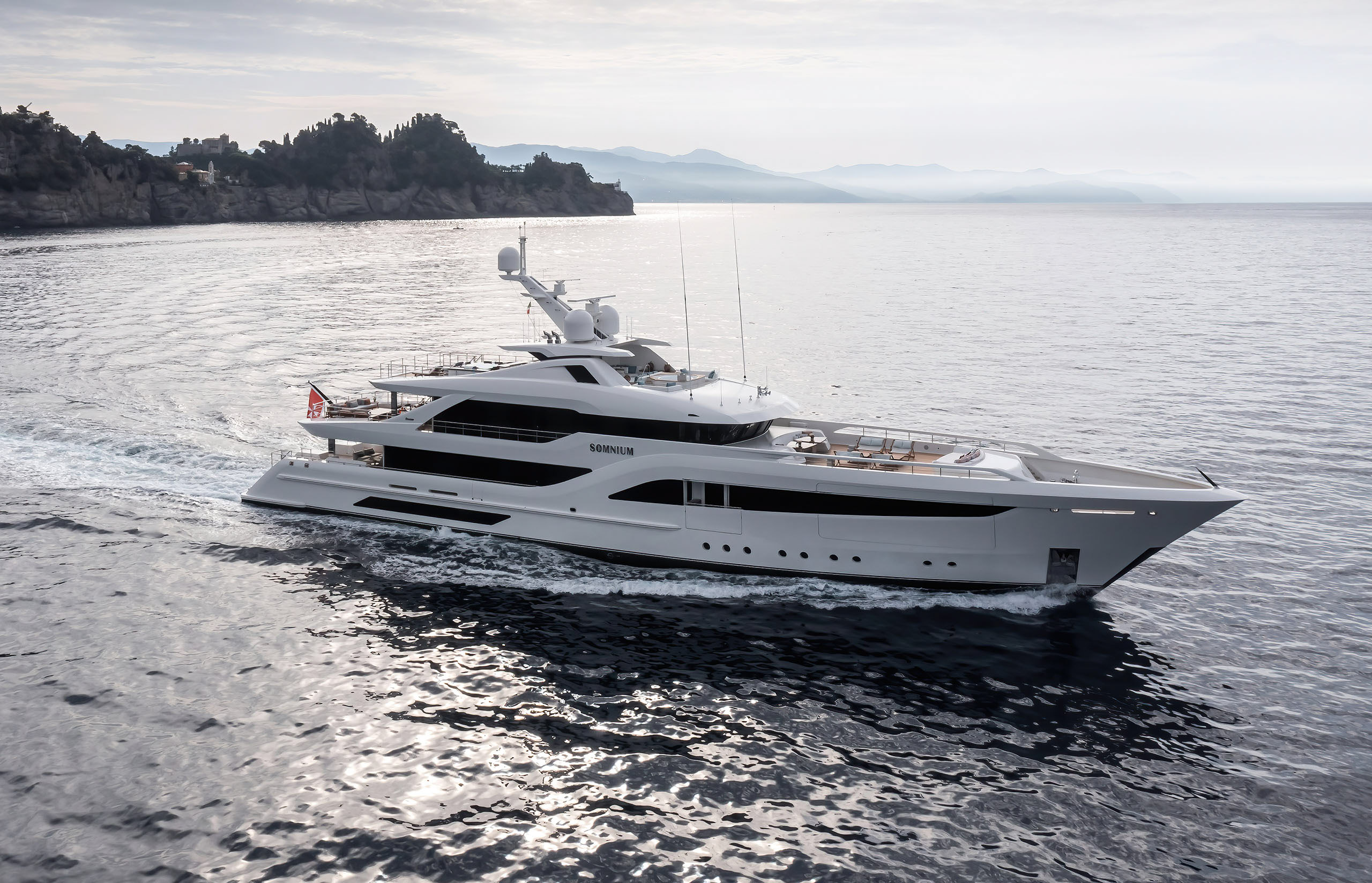 M/Y Somnium is an award-winning 55.2-metre yacht with an interior conceived as a journey through shifting atmospheres, where layered textures, art and light create a complex yet serene environment rich in references to the sea and nature. Designed to meet the owner’s affinity for speed and elegance, it features a large pool with adjustable depth, a cocoon-like upper-deck saloon, a fold-down gym platform, and a vast foredeck lounge.